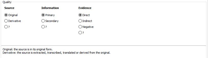 - Quality of Data: To qualify the validity of the information, set the certainty of the source by using the cursor, from 0 (not sure) to 3 (completely certain).